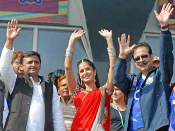 Katrina Kaif along with Uttar Pradesh Chief Minister Akhilesh Yadav.