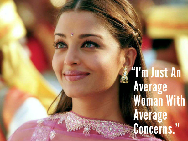 The beautiful Aishwarya Rai, despite of being crowned Miss World in 1994, and being the top actresses of Bollywood says "I'm just an average woman with average concerns". This shows how firmly Aishwarya Rai's foot is planted on the ground, despite of all the success and hullabaloo that surrounds her.