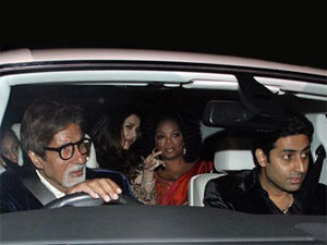 After spending almost an hour with the Bachchans' in their house, Amitabh Bachchan drove Oprah Winfrey along with Jaya Bachchan, Abhishek and Aishwarya to the dinner party hosted by Parmeshwar Godrej.