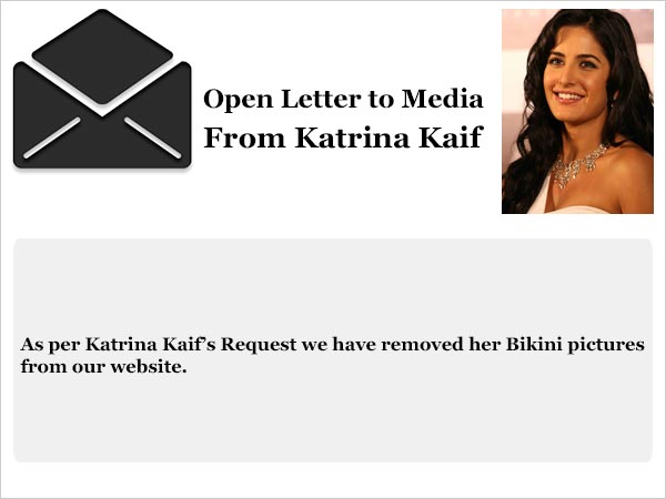 Bollywood actress Katrina Kaif is reportedly very miffed over her leaked bikini photos during her holiday trip along with Ranbir Kapoor in Spain. Katrina has also issued an open letter to the media, as she feels betrayed because the media has encroached on her personal space by printing her private photographs. According to the latest reports, Katrina has pledged never to wear a bikini ever on the beach.