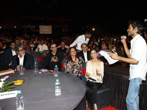 The BIG Star Entertainment Awards always strives to be very unique & special. This year too, true to its commitment, the Awards saw a Special category that was presented in an innovative way. Where citations & show reels are the order of the day, for the category, BIG Star Entertainment Awards, thought it differently. The latest singing sensation from the south, Dhanush, a diehard Big B fan just could not resist his special rendition of Kolaveri Big B! He walked down in front of the superstar, the winner of the category, and sang to the superstar on his four decades in the industry, his talented acting & singing skills & finally to the dictionary in his name! What better way to felicitate a man whose work & worth cannot be simply put in paper!