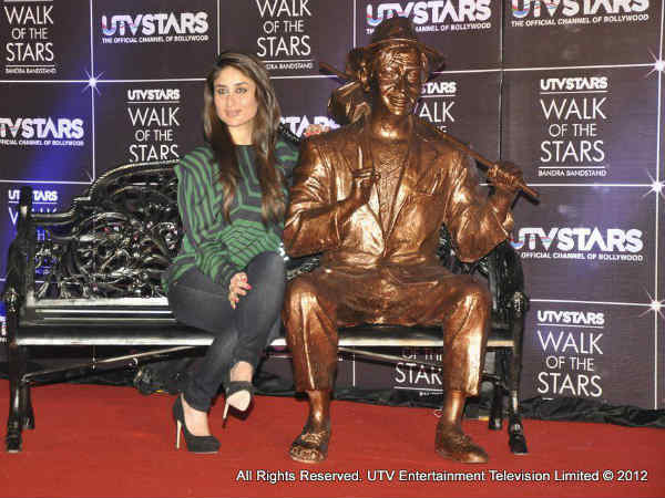 Actress Kareena Kapoor unveiled her grandfather Raj Kapoor's brass statue in Mumbai. Inspired by Hollywood's Walk of Fame, UTV Stars, a Bollywood channel has introduced its own Walk of Stars and Kapoors were the first family of Bollywood to be felicitated in it.