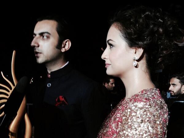 Dia recently posted a picture of her and Sahil on her Twitter page with the caption "Officially engaged". The post also included a hashtag 'NYC' which indicates that the engagement was held at New York City, following their visit to the recently held IIFA 2014 at Florida.