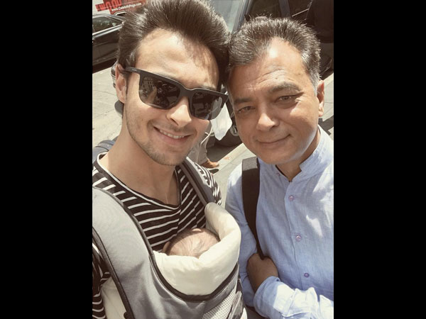 Aayush Sharma's parents are with the couple in NYC too, and Aayush has posted a picture standing alongside his dad and holding baby Ahil and captioned it as, "3 Generation of Sharma's #traveldiaries2016 #manhattan #newyorkcity #babylove #dad #family".