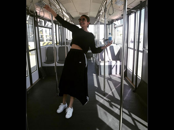 The 'Haryana ki Sherni' Anushka Sharma, captioned the touchdown in Budapest picture in the most funkiest way and is seen standing alone inside a bus and clinging to the handle, "Touchdown in Budapest . Home for next few days shooting song for #Sultan !!"