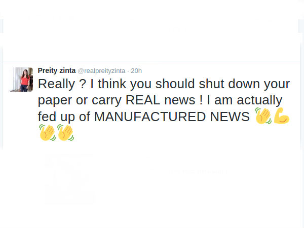 Preity Zinta, sent out a series of tweets and was clearly furious about the baseless rumours. The actress, also dragged the leading daily on Twitter and slammed them in the meanest way possible.