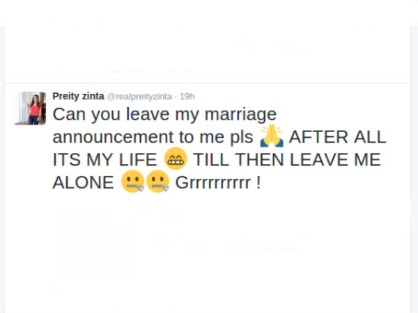 Not stopping at this, Preity Zinta also slammed another leading daily as, "Can you leave my marriage announcement to me pls AFTER ALL ITS MY LIFE TILL THEN LEAVE ME ALONE Grrrrrrrrrr !"