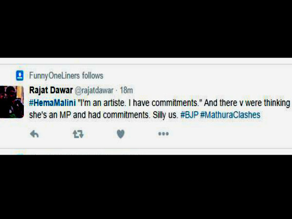 "Anyone in Mathura will vouch for my sincerity - I'm improving living conditions, providing roads and drinking water... A sansad's duty is not to head the police force or quell rebels or evict encroachers. Development is my line of duty and I'm sincere in my job."