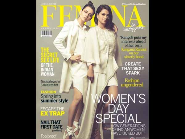Now, Kangana graces the cover of Femina March edition in the most different way possible. Well, it's a women day special edition and Kangana shared the cover space along with her sister, Rangoli, who herself is one strong lady! And we gotta say that the ranaut sisters are nailing the cover page like a boss!