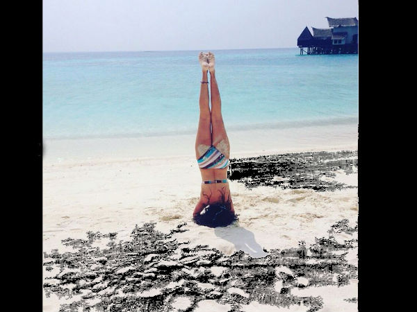 Nargis Fakhri, captioned her weird bikini picture as, "@fionadsouza14 @zoeyquinny #beach #night Night time fun time with the girls." and Mini Mathur captioned her upside down bikini pic as, "Miss my upside down view on the world... It's time to rev up and tumble. #yoga #headstand #madives".