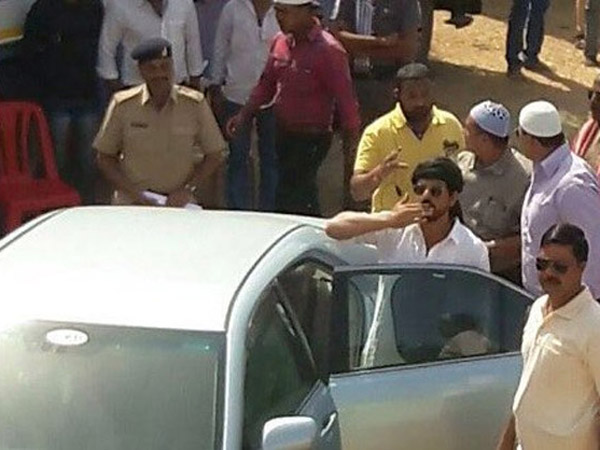 Shahruh Khan, also smiled and waved to a massive crowd that gathered to see the shooting of Raees.