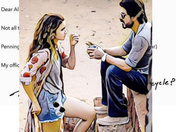 So as per the pictures, we get a feeling that Shahrukh Khan and Alia Bhatt are pen pals in the movie, and the bubbly actress writes about her love life to SRK, for which the Baadshah of Bollywood responds how to go about it positively.