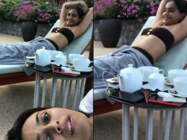 Sonam Kapoor is seen chilling by the pool in Phuket, Thailand.
