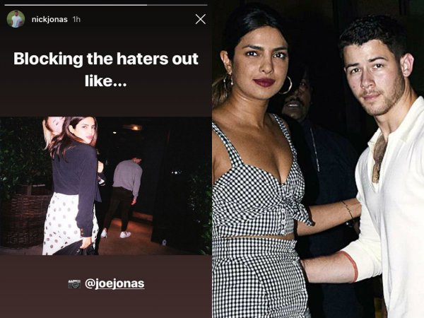 Not taking things lying down with the haters questioning their choices, Nick Jonas sent out a perfect message to the haters on his Instagram story by posting a picture of Priyanka Chopra, Sophie Turner and himself during PeeCee's birthday party and captioned it as, Blocking the haters out like..." And also tagged his brother Joe Jonas in the picture credits.