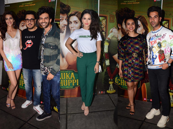 Kriti Sanon and Kartik Aaryan's latest movie, Luka Chuppi has won the hearts of audiences and is doing very well at the box office. Celebrating the success of the movie, the cast and crew of Luka Chuppi held a bash on Tuesday night which was attended by many Bollywood celebrities. Kartik Aaryan, Kriti Sanon, producer Dinesh Vijan, director Laxman Uttekar, Sunny Leone and her hubby Daniel Weber, Rajkummar Rao and Patralekha, Chunky Pandey and many other celebs attended the party. Check out all their pictures!
