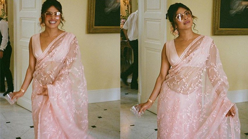 The 'Quantico' actress looked radiant in a soft pink saree which she paired with matching sunglasses. In one of the pictures, Priyanka is seen striking a pose for the lens, while in the second one, she is seen sharing a hearty laugh.