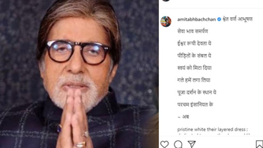 Amitabh tweeted, "Pristine white their layered dress ; dedicated to serve they be ; god like incarnations they ; companions of the sufferer they ; erased they their ego have ; to us they have embraced in care ; they be the divine destination ; they fly the flags of humanity."