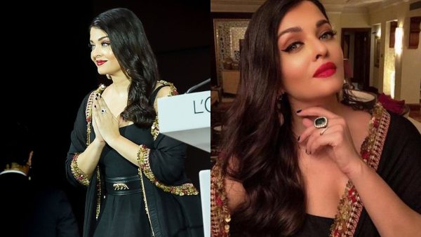 Aishwarya wore a black dress by Indian designer Sabyasachi when presenting a brand at the event. She let her bair down and paired the dress with bold eyes and red lips. The pictures from the event were shared by her team on Instagram.