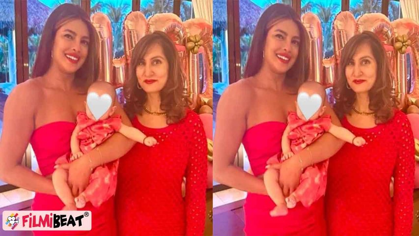 In the picture, Priyanka is seen holding her daughter Malti Marie Chopra Jonas in her arms while striking a pose for the camera along with her bestie Tamanna. The trio is seen wearing red outfits, and we are loving the cute twinning factor of the picture.