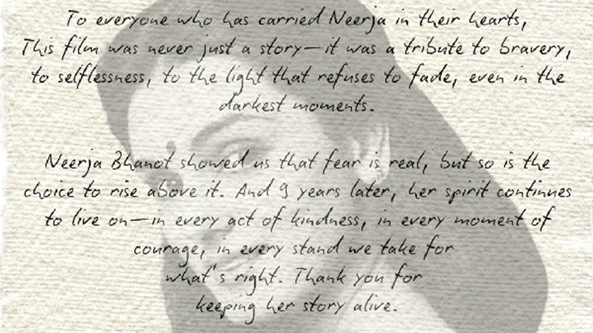 Nine years later, Neerja continues to inspire the audience with its message of resilience across generations. As fans revisit this poignant story, the film's legacy stands strong-a reminder that true courage is timeless and heroism never fades. As director Ram Madhvani shares his thoughts on this tribute through a heartfelt post on his social media, Neerja's leading lady, Sonam Kapoor, too, honored the film's legacy by sharing a tribute video on her Instagram story, celebrating Neerja Bhanot and her act of bravery.
