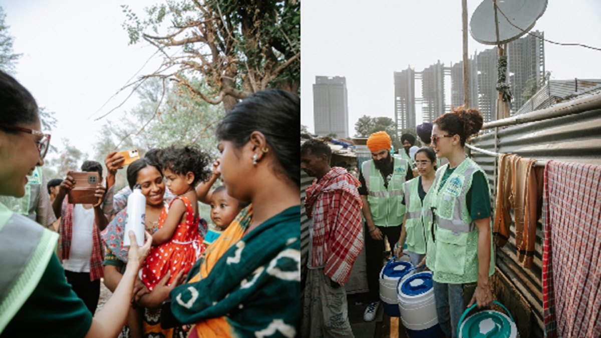 In these latest images, we see Taapsee distributing water dispensers and bottles to small children and the needy.
