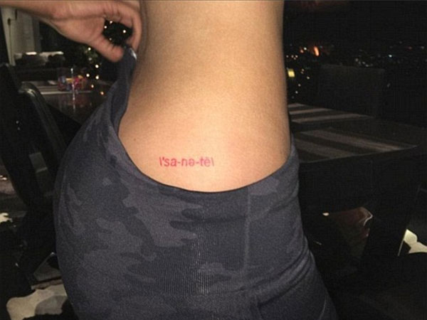 She hadn't revealed her face in the picture. But, it was quite obvious from her famous posterior. Her second tattoo is phonetic of the word.