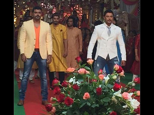 Now, Jaggu Dada is back with a few new pictures of actors Darshan & Srujan Lokesh shooting for a song. The background of the song looks very rich, decked up with flowers and lights, to which besties Darshan-Srujan are dancing with the co-stars.