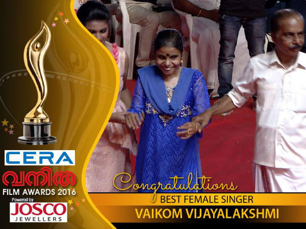 Best Singer (Female): Vaikom Vijayalakshmi (Kaikkottum-Oru Vadakkan Selfie)