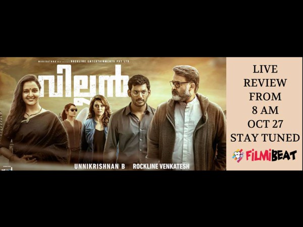 Villain, featuring Mohanlal in the lead role has hit the theatres today (October 27, 2017). Read Villain LIVE review here..