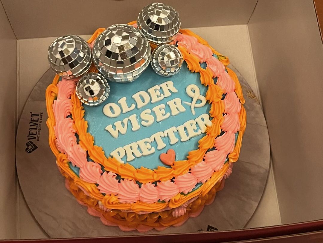 One of the cakes had the words "Older, wiser, and prettier" written on it.