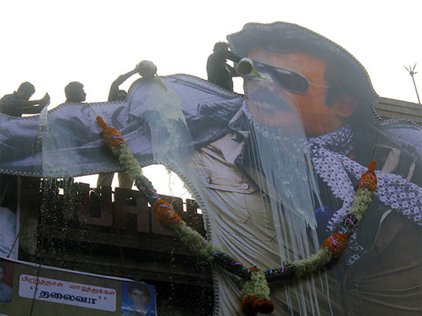 During the star's movie releases, birthday and several other occasions, fans indulge in a ritual called 'milk abhisheka' where they pour thousands of litres of milk on Rajinikanth's massive cut-outs. An act that equates Rajinikanth's status with that of the God, in the eyes of his ardent fans.