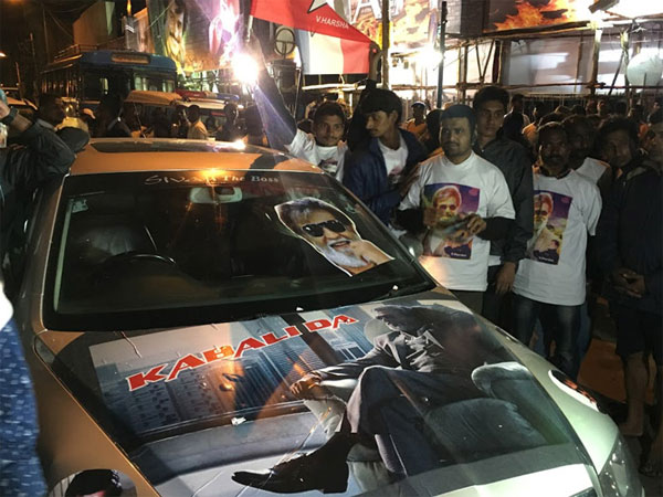 Many fans have garlanded posters and banners carrying their matinee idol photo, with 'Kabali da!', a catch-phrase from the movie, which means "I am Kabali".
