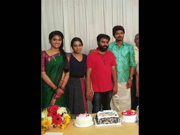 Ilayathalapathy Vijay celebrated his 42nd birthday on the sets of his upcoming film Vijay 60 (see photos below).