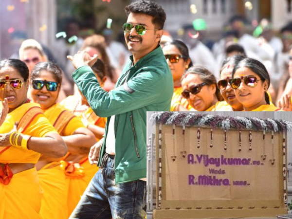 According to the still, Vijaykumar IPS (the character name of Vijay) will tie the knot with Mithra MBBS. Since both Samantha and Amy are a part of this film, it is not yet known who plays the character of Mithra.