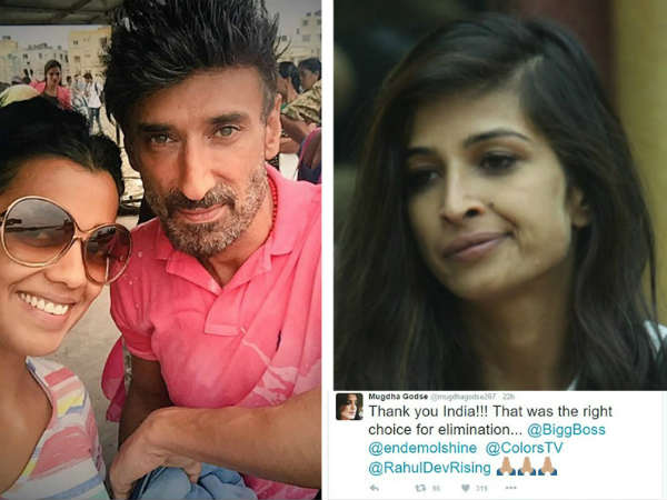 Well, it is none other than Rahul Dev's girlfriend Mugdha Godse. The model-actor took to social media to express her happiness over Priyanka's elimination. She wrote, "Thank you India!!! That was the right choice for elimination... @BiggBoss @endemolshine @ColorsTV @RahulDevRising 🙏🏽🙏🏽🙏🏽."