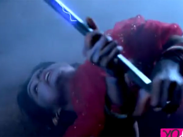 Soon she falls down and pretends to be unconscious as per her plan. A man whose face is covered enters the temple. Sandhya watches this. As soon as he tries to inject her with something, she grabs his hand! But, the man pushes her away and places a metal rod in her hand and she gets an electric shock because of this.