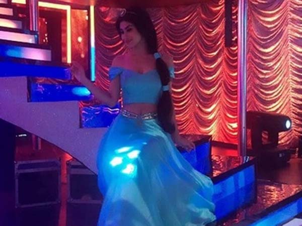Mouni, who is hosting the show, has created her own style statement. She has been updating her fans about her looks on the show on her social networking accounts. Posting the new look (Slide 2), Mouni wrote, "Straight from disneyland to #soyouthinkyoucandance stage❤️ #Jasmine."