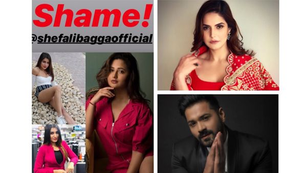 In her first post, the Bollywood actress shared a collage of Rashami and Shefali and captioned it, "Shame! @shefalibaggaofficial." - (sic).
