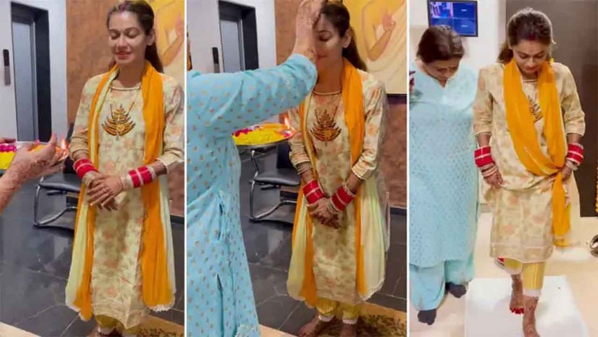 In the above video, one can see the newlywed bride Payal Rohatgi looks beautiful in a yellow suit and red bridal bangles. The video is going viral on social media, and fans can't stop gushing over her beautiful looks.