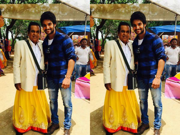 "Here's a working still from my upcoming movie #Garam. With PK.. #Brahamanandam garu", Aadhi posted on his official Facebook page.