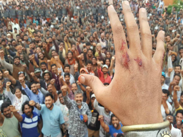 Team Baahubali, who were overjoyed about the way the film is shaping up, has treated its franchise fans with a small video, where the entire crew went on to chant 'Jai Mahishmati', doing the signature pose. Can you guess who is the owner of that forehand? No prizes though!