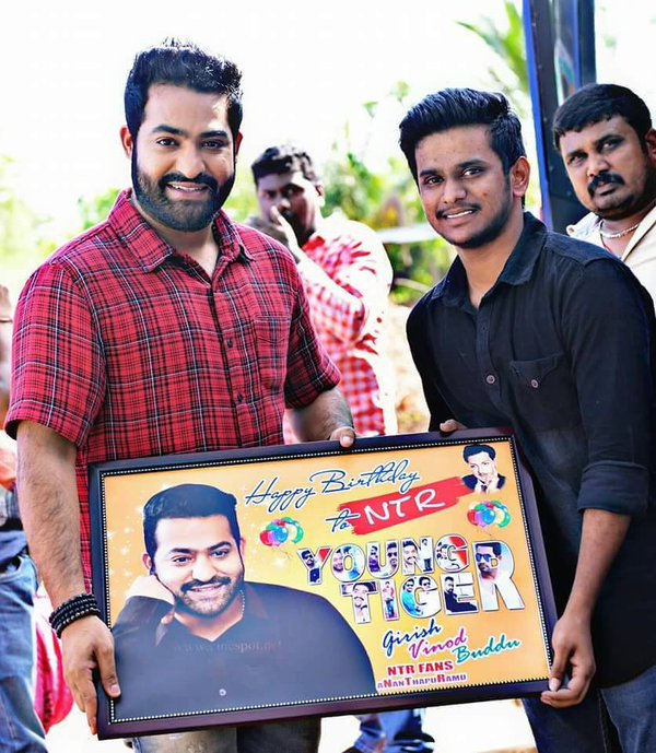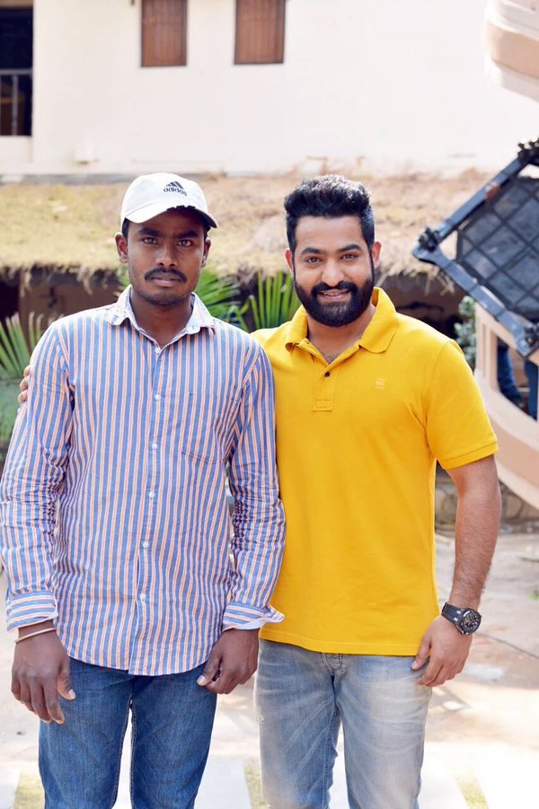 These pictures of the fan-boys with the star, from the sets, have been revealing us many more looks of NTR, besides those official first look posters, that were released on the actor's birthday.