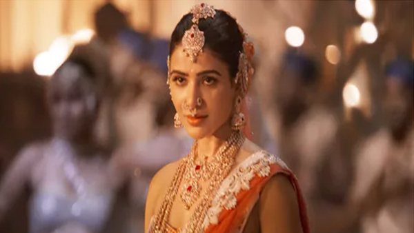 Samantha was shown sans jewelry and silk robes for the first part of the trailer and then was transformed into a Goddess dipped in jewels and adorning embellished costumes, looking like a dream.