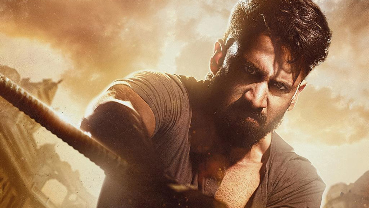 The first look poster of VRUSHAKARMA presents a raw, intense, and power-packed visual that instantly sets the tone for this never-before mythical thriller. Dominated by earthy tones, dust, the poster captures a high-impact moment filled with grit and urgency.