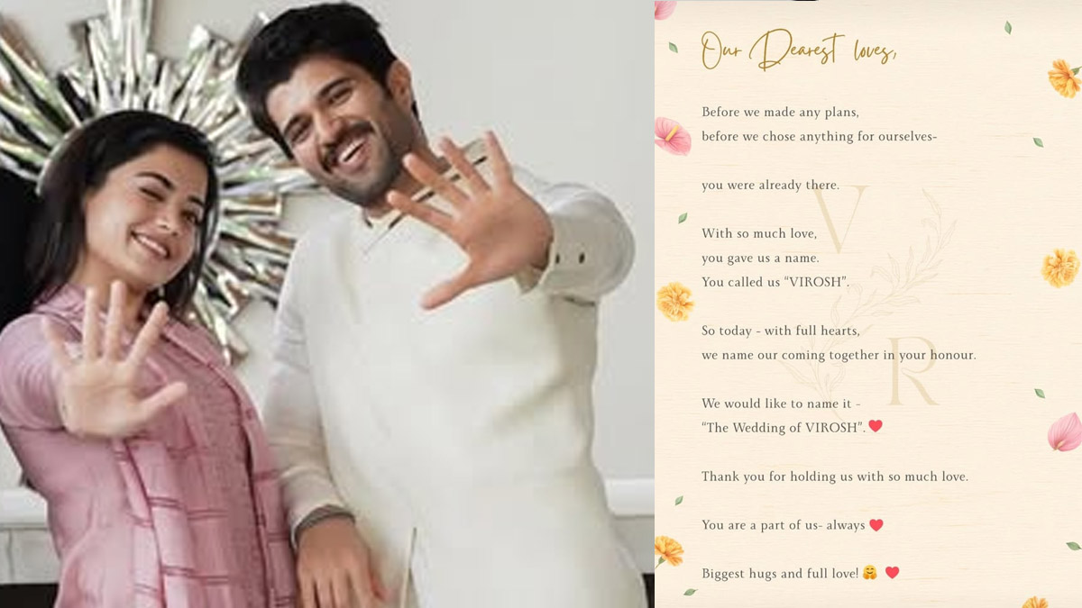 Rashmika Mandanna And Vijay Deverakonda Wedding: Actors Rashmika Mandanna and Vijay Deverakonda have officially confirmed their wedding, putting an end to months of speculation surrounding their relationship. On Sunday, the two shared identical notes on their Instagram Stories, announcing that their upcoming ceremony will be referred to as "The Wedding of Virosh" - a name coined by fans.